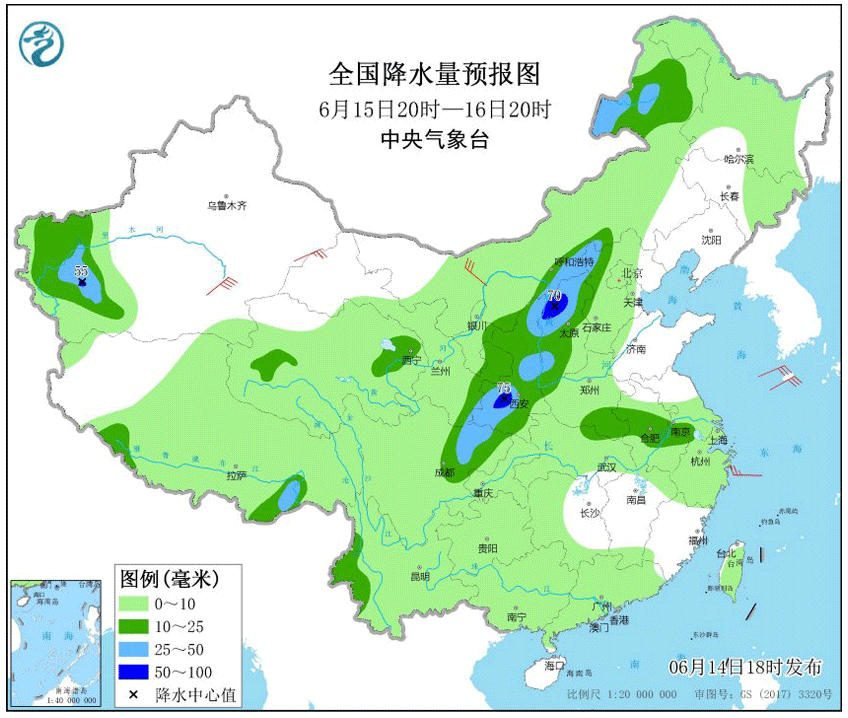 ②15日夜间至17日,西北地区东部、四川盆地、华北西部和北部、东北地区、黄淮南部、长江中下游等地的部分地区有大到暴雨,局地大暴雨,并伴有雷雨大风等强对流天气。
