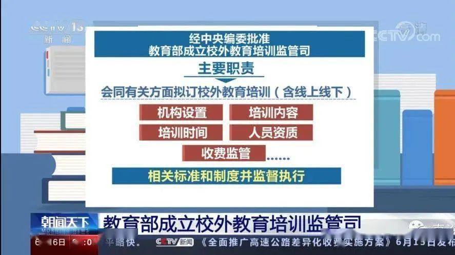 据介绍,校外教育培训监管司承担面向中小学生(含幼儿园儿童)的校外教育培训管理工作,指导校外教育培训机构党的建设,拟订校外教育培训规范管理政策。会同有关方面拟订校外教育培训(含线上线下)机构设置、培训内容、培训时间、人员资质、收费监管等相关标准和制度并监督执行,组织实施校外教育培训综合治理,指导校外教育培训综合执法。指导规范面向中小学生的社会竞赛等活动。及时反映和处理校外教育培训重大问题。