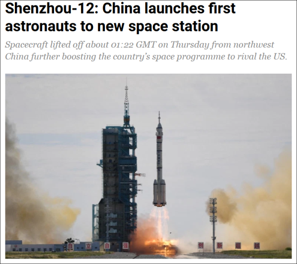 但报道同时提到,“中国成功发射神舟十二号载人飞船,这是中国五年来首次载人航天任务,进一步加速了中国与美国竞争的太空计划。”文章回溯了中国十几年来的载人航天发展经历,称中国的目标是到2030年成为世界主要航天大国,“把太空变成中美竞争的最新领域”。