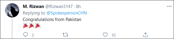 “来自巴基斯坦的祝贺!”