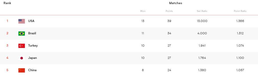 在本轮比赛后,中国女排在积分榜排名第五,距离第四的日本女排还有3分差距,依旧保留着晋级四强的希望。