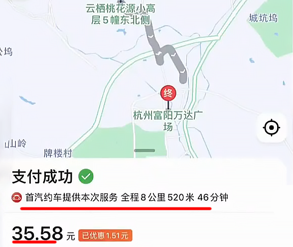 高女士说,她从杭州到富阳,全程只有8公里,平台显示的车价是35.58元,司机接到她之后,就一直想给她搭话,高女士上车之后坐在后排,司机说,你们这儿还是女保安?然后就自己一边开车一边笑,高女士心生惧意,没有理他。