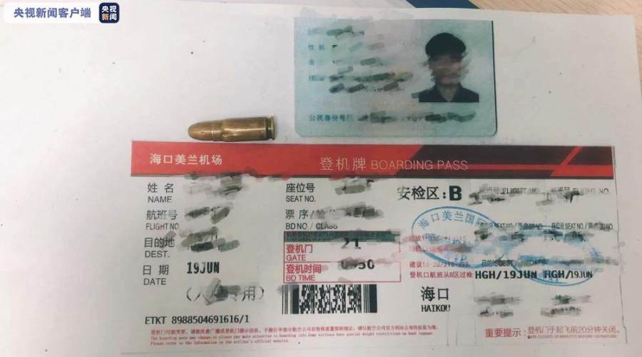 6月19日上午,旅客兰某在海口美兰机场一安检通道过检,其携带的随身行李在进行X光机检查时,安检员发现在旅客行李过检图像中存在一枚疑似子弹的物品,安检员立即对其行李进行开包检查,查获未击发手枪子弹一发。在确认无疑后,值班人员将旅客及其行李物品一并交至机场公安处理。截至目前,该旅客已被机场派出所进行拘留处理。