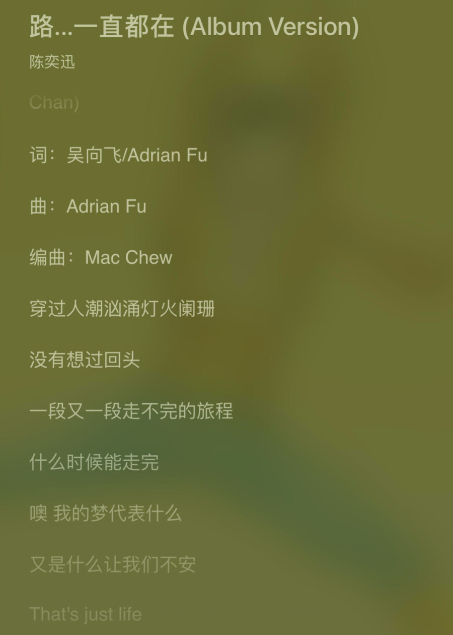 QQ音乐《路一直都在》歌词截图