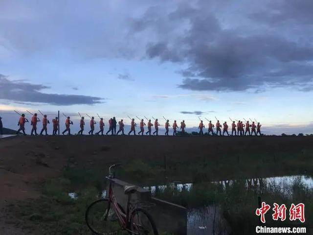 资料图:6月19日,内蒙古大兴安岭两地堤坝发生险情,大兴安岭森林消防指战员进行救援。