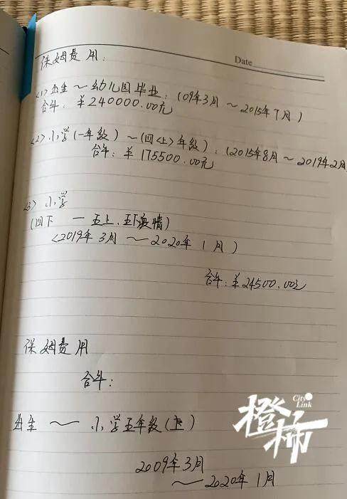 这样,从贝贝出生到幼儿园毕业,请的是住家阿姨,六年花了24万元。小学一年级到四年级,阿姨是早出晚归来帮忙,花了17.55万元。四年级到五年级,阿姨来半天,打扫卫生加烧晚饭,花了2.45万元。这样,一共花了44万元。