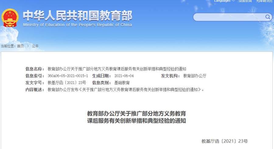 据教育部政务新媒体“微言教育”公众号22日消息,教育部近日印发通知,为推进做好义务教育课后服务工作,遴选确定首批23个义务教育课后服务典型案例单位,并梳理汇总了有关创新举措和典型经验,要求各地结合实际学习借鉴。