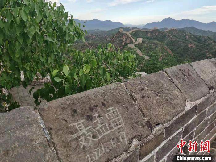 据介绍,6月18日,金山岭长城保护员在巡查时发现墙上有两处新的刻字后立即上报,金山岭长城文物管理处接报后组织人员前往事发地进行核实,并向公安机关报案,滦平县公安局金山岭长城派出所接警后立即展开调查。