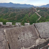 两名游客在金山岭长城上刻字,1人被警方行拘