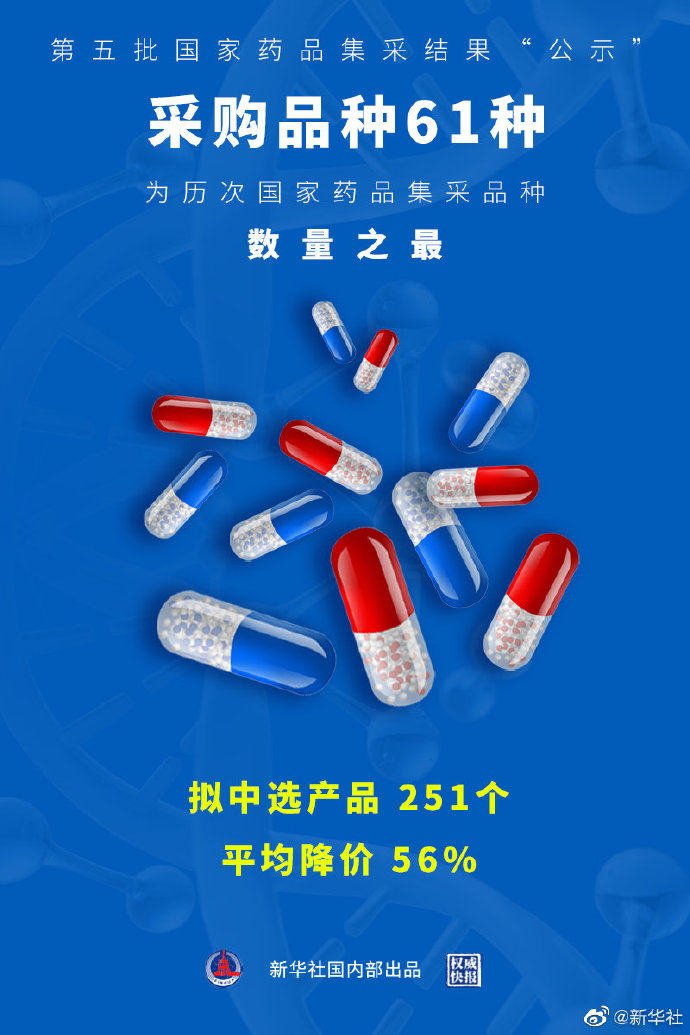 采购品种61种创新高,第五批国家药品集采平均降价56%