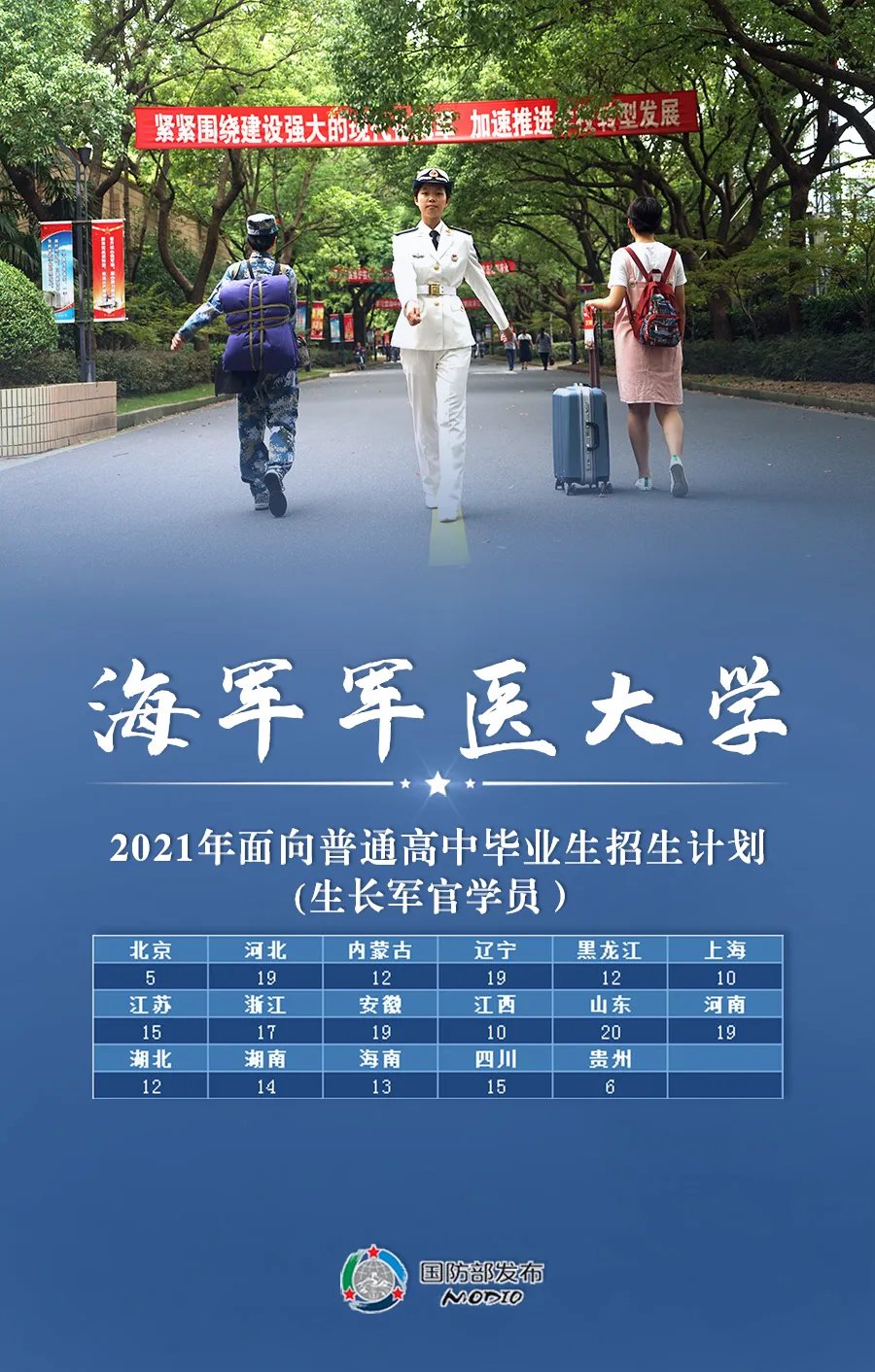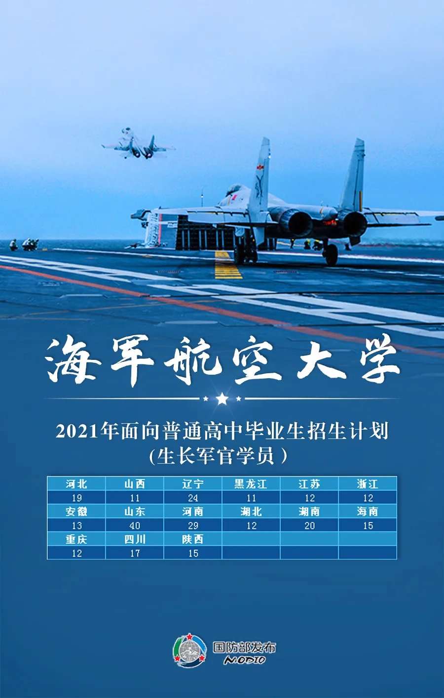 任国强:根据今年军队院校招生计划,共有27所院校招收普通高中毕业生1.3万余人,其中军委直属院校1所、陆军10所、海军5所、空军4所、火箭军1所、战略支援部队2所、武警部队4所。值得关注的是,招收普通高中毕业生标准条件有新的变化,今年起,全军院校招生(含武警)均应达到各省本科一批录取最低控制线,考生在高中阶段体质测试成绩应达及格以上。