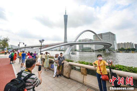 6月25日,广东省广州市,市民在海心桥前留影。
