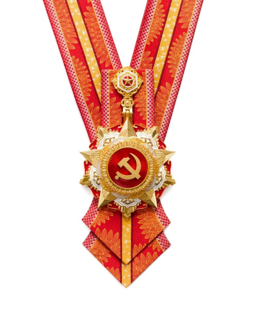 “七一勋章”是党内最高荣誉,以朴素、庄重为主要设计理念,以红色、金色、白色为主色调,使用冷压成型、花丝镶嵌、彩丝织锦等工艺制作。