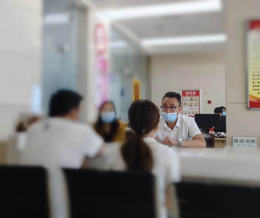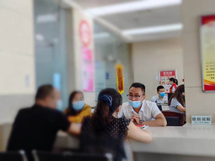 离婚冷静期落地以后,每对前来洛阳市涧西区民政局办理离婚的夫妻,在登记之前都要到调解员的窗口再次确认离婚意愿。情感修复师梁军和他的同事就以调解员的身份参与婚姻调解。