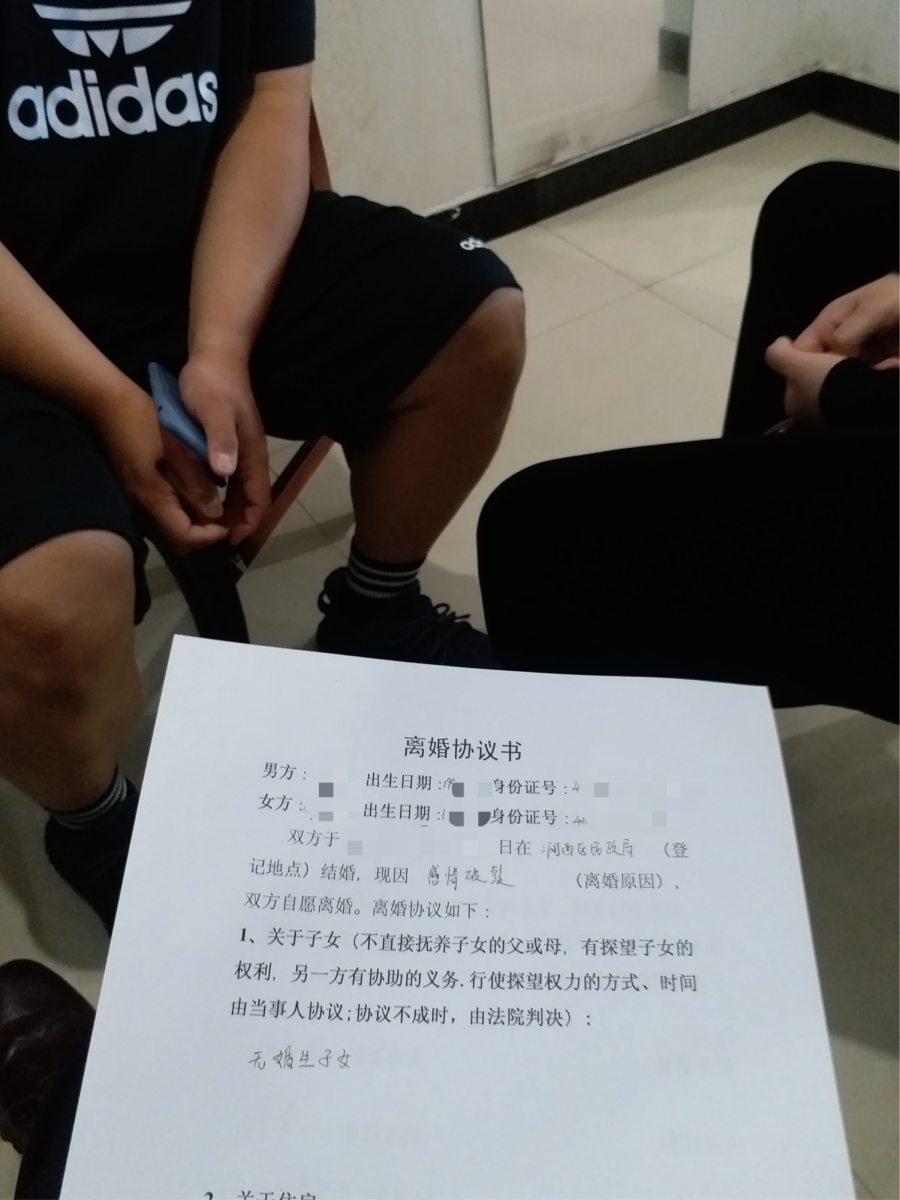 “我们办离婚。”两张结婚证被撕成8个碎片,跟户口本放在一起,摆在洛阳市涧西区民政局离婚登记窗口的桌子中间,口罩遮住两个年轻人的脸。