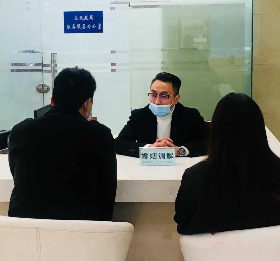 (梁军在民政局进行婚姻调解)