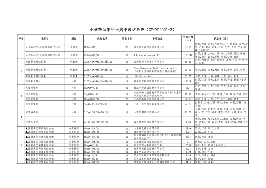 与6月23日晚间公布的拟中选结果并无差别,共有61个品种竞标成功,涉及148家企业的251个产品,拟中选药品平均降幅56%。