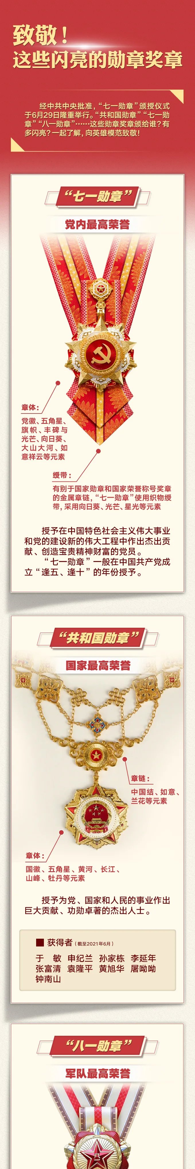 2021年是中国共产党成立100周年,也是该勋章设立后首个“逢五、逢十”的年份,故而“七一勋章”首次颁发