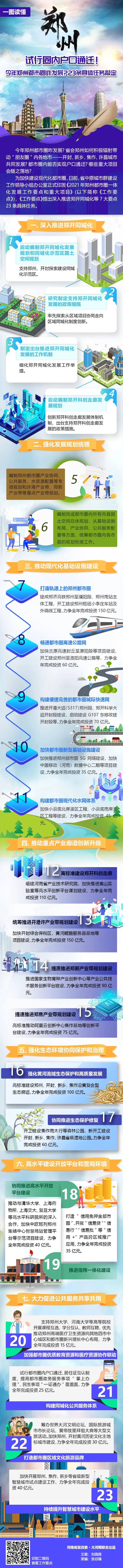 为加快建设现代化都市圈,日前,省中原城市群建设工作领导小组正式印发《2021年郑州都市圈一体化发展工作要点》(以下简称《工作要点》),《工作要点》提出深入推进郑开同城化等7大要点23条具体任务。