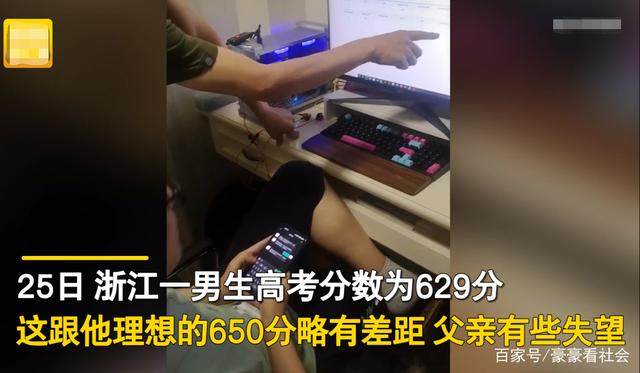 近日,浙江宁波,一则男生高考成绩629分,爸爸看完分数很失望的视频在网络上走红,引起网友的关注。画面中,一名男生和自己的爸爸坐在电脑前查高考分数,查出来后,电脑上显示高考成绩为629分。然而,这和他自己理想的650分略有差距,男生神情显得很是失落。