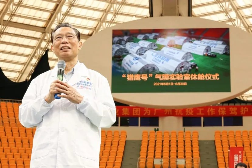2021年6月30日,广州实验室主任、中国工程院院士钟南山一声令下,广州体育馆内的六组气膜舱全部关灯。