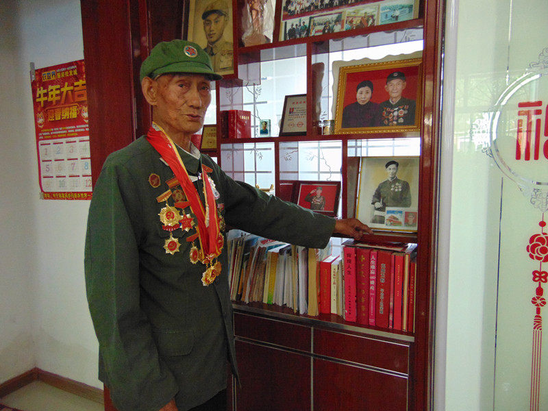 6月26日,宁夏回族自治区中宁县,获颁“光荣在党50年”纪念章的老党员魏天录(党龄70年)向记者讲述自己年轻时当兵的故事。他曾参加抗美援朝战争,因在反细菌战中的突出表现荣立三等功。方文媛摄