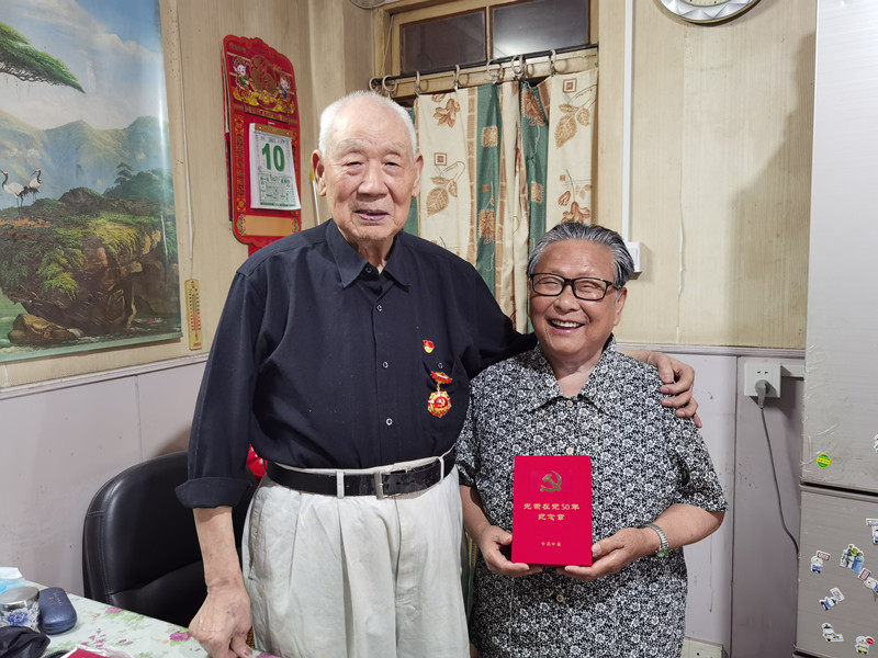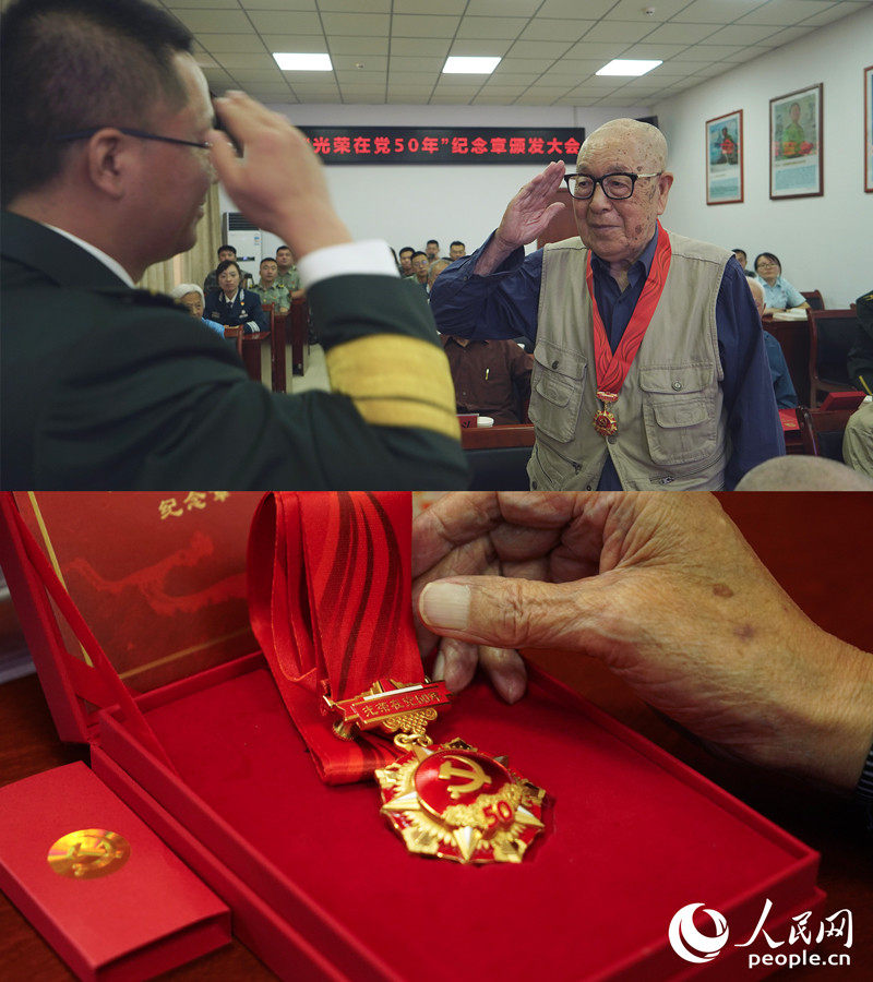 6月10日,上海市宝山区93岁的老党员张敦林(党龄72年)获颁“光荣在党50年”纪念章。他曾参加淮海战役、渡江战役。沈彦摄