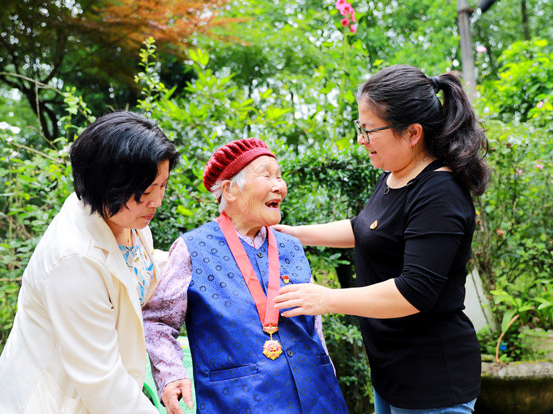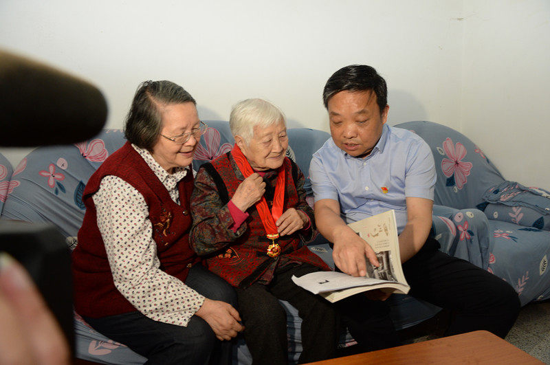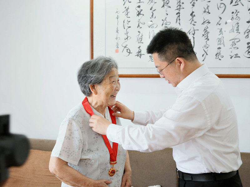 6月24日上午,四川省德阳市103岁的老红军李白蕾(党龄83年)获颁“光荣在党50年”纪念章。德阳市委宣传部供图