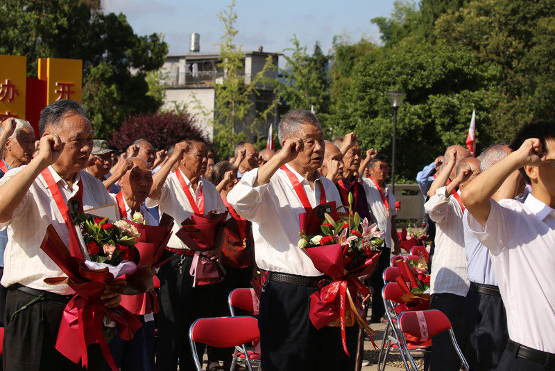 6月10日,革命老区福建省三明市宁化县举行“光荣在党50年”纪念章颁发仪式。图为老党员们重温入党誓词。范日樑摄