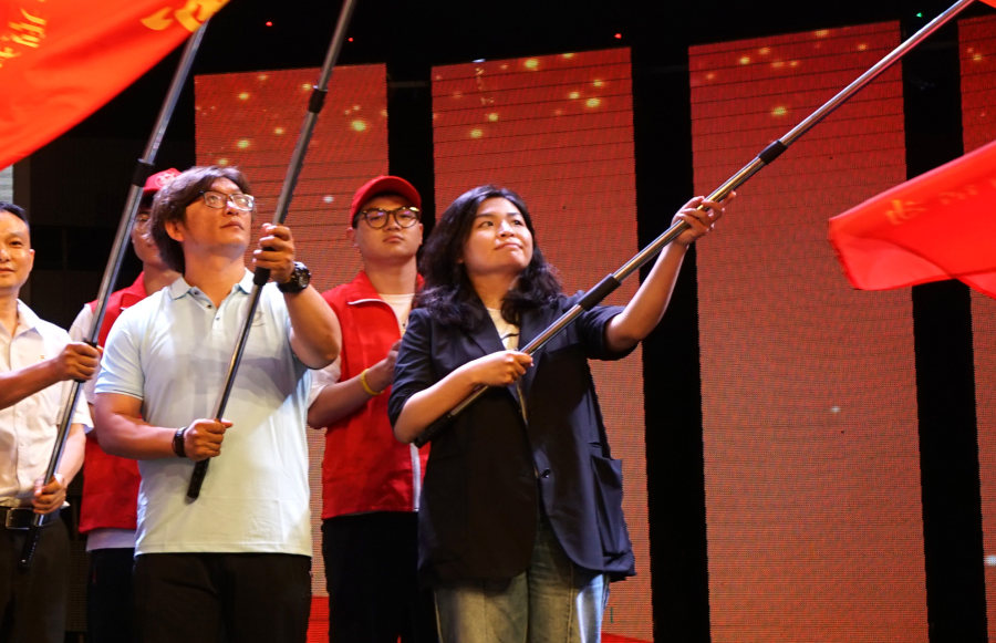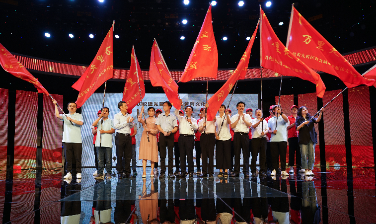 新闻工作者、最美劳动者、志愿者、行者、文体工作者和文化学者的代表阎铁成、石聚彬、孙甜甜、李灵、李刚、张瑄桐、王彦飞、石闯、赵克接受授旗,并成为第一批实地探访黄河两岸的成员。