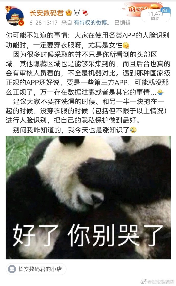 该博主也表示,有从事后台审核的朋友对他说在审核工作时:“经常会看到很多人在洗澡的时候、在和“另一半抱在一起的时候”、在没穿衣服的时候、在进行各种奇奇怪怪动作的时候进行人脸识别。”