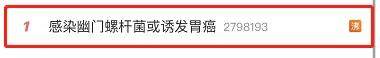 3日,话题#感染幽门螺杆菌或诱发胃癌#冲上微博热搜第一,一并热搜的还有#江苏启动幽门螺杆菌筛查项目#,引发网友关注。
