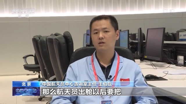 中国航天员科研训练中心选训室主任 王焰磊:那么这个时候呢,因为我们地面的监控手段是有限的,所以需要舱内的航天员和舱外的航天员之间通过话音沟通,包括舱内的航天员通过仿真软件和他看到的图像,进行一些判断来进行操控。