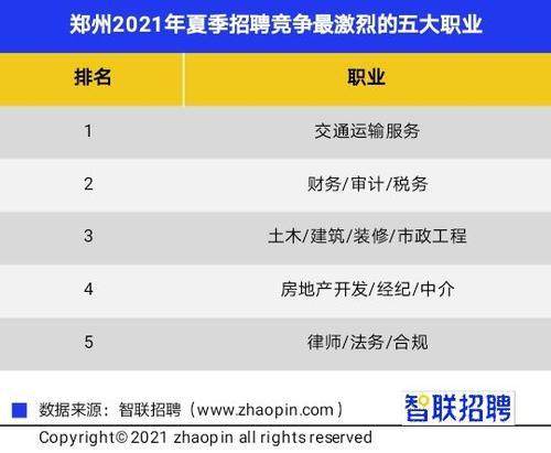 这个夏季,郑州哪些行业及哪些职业竞争最激烈?十大高薪行业分布在哪里?今天,智联招聘发布的《2021年夏季郑州雇主需求与白领人才供给报告》显示,房地产/建筑/建材/工程行业的竞争指数最高,达到111.0;交通运输服务、财务/审计/税务与土木/建筑/装修/市政工程等职业竞争激烈;基金/证券/期货/投资行业薪金收入位居榜首。