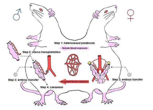 所谓“公鼠怀孕”,是研究人员构建了雌雄连体近交系大鼠,将子宫移植到雄性共生体中,再同时对雌、雄共生体分别进行胚胎移植,最终在雄性共生体的移植子宫中成功解刨出了10只幼鼠。至于“动物伦理”,作者在研究时已尽量减少使用动物的数量,并通过麻醉减少动物痛苦。而上传预印本论文本就是出于和同行交流的目的,在提交期刊之前收集反馈意见。
