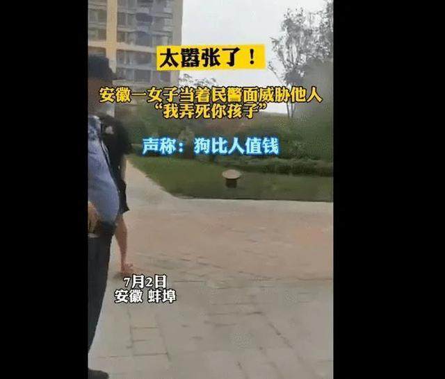 “我在教她以后做人做事,敢弄我的狗……我有钱!我干了几个徽州宴,砸几千万我都赔得起,都没得我的狗值钱。”此前,一则爆料视频在蚌埠市民朋友圈迅速传播。视频中狗的女主人掐着腰和一位市民在争吵,警察赶到现场后,该女子依然大放厥词。