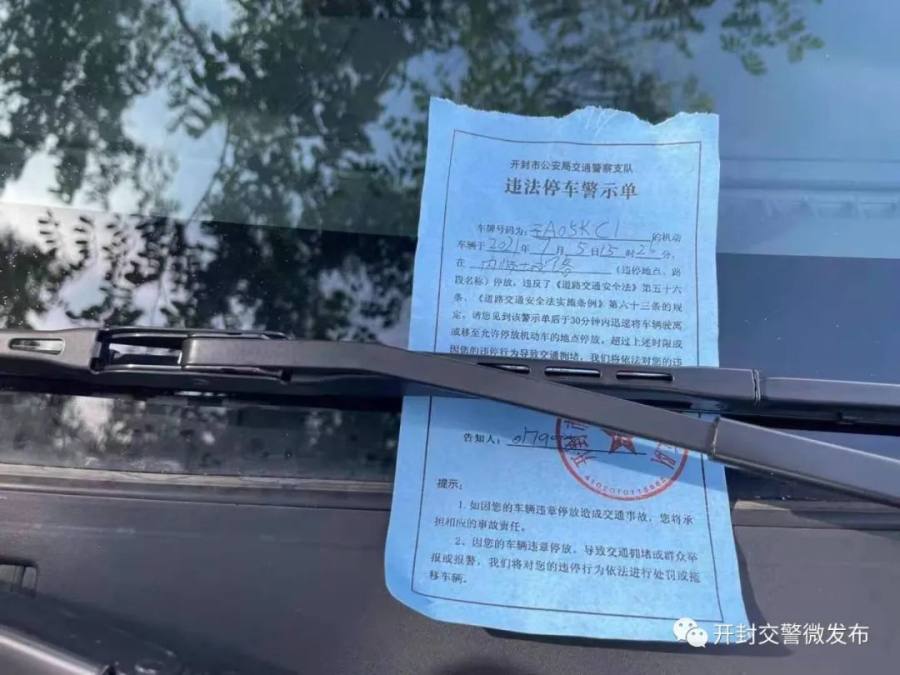 开封交警“贴条”新变化:30分钟内不处罚!