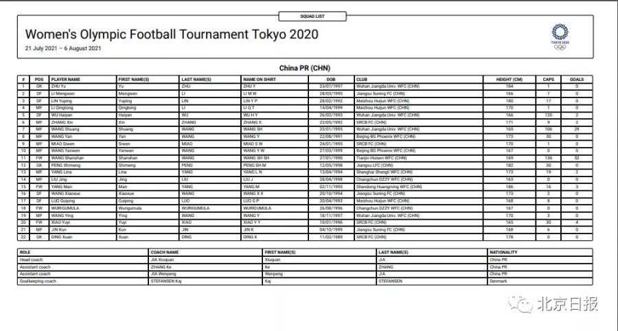 王霜领衔!中国女足东京奥运会大名单出炉