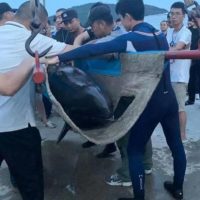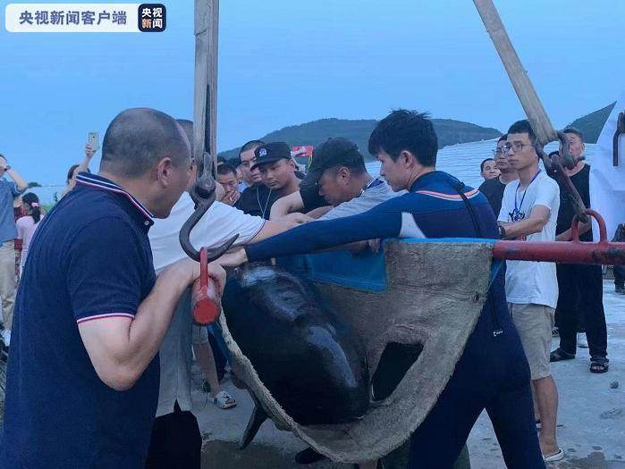 浙江台州6头搁浅瓜头鲸放归大海,1头仍在救治