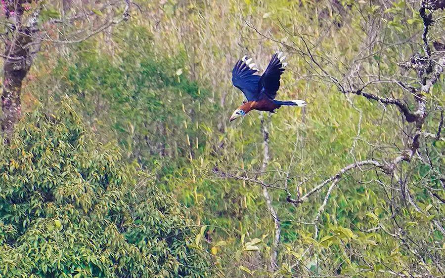 棕颈犀鸟(摄于2021年3月7日)。新华网发(何海燕 摄)
