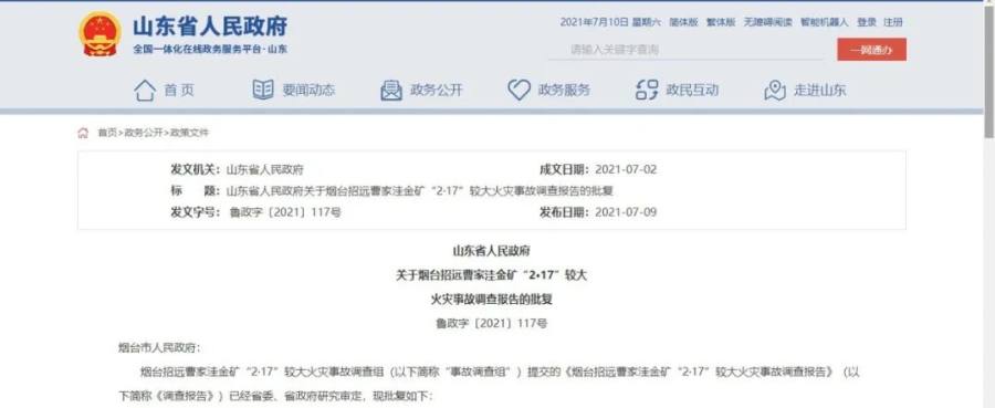 27人被追责问责!山东招远金矿2·17火灾事故致6人遇难
