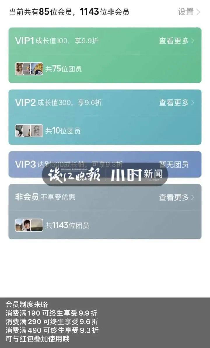 大概是最近代购生意越来越激烈了,翻看小程序发现这家茶颜代购还推出了会员服务,参团成为会员之后能根据积分(累计下单购买金额)升级,享受相应的折扣待遇。不过,从7月13日当天的下单记录来看,跟团下单的39位消费者中有26位都是首次下单,也就是说茶颜悦色代购的复购率只有30%。
