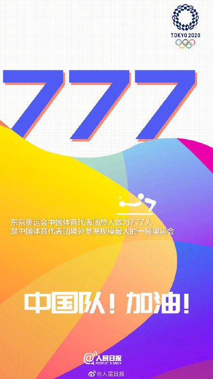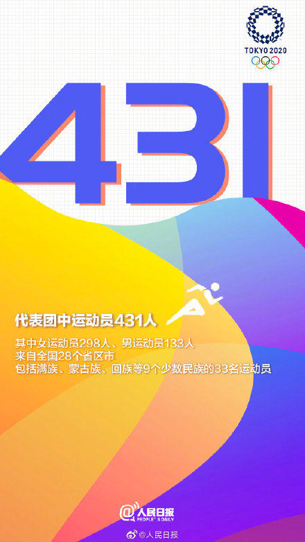 7月14日下午,参加东京奥运会的中国代表团名单正式公布。此次中国体育代表团总人数为777人,其中运动员431人(女运动员298人、男运动员133人),教练员、领队、科医人员等运动队工作人员307人,团部工作人员39人。东京奥运会是中国体育代表团境外参赛规模最大的一届奥运会。目前,代表团成员疫苗接种率达99.61%。