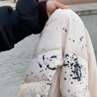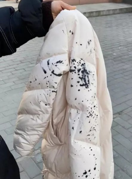 外衣背面被陌生男子恶意泼墨