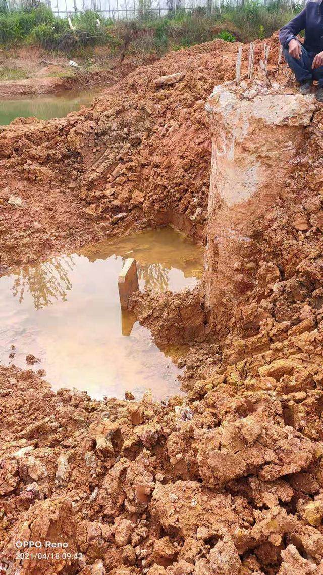 今年清明,冷家后人回到庙岭镇祭扫之时,却发现冷志善坟头四周堆着高高的泥土,原本的墓碑处变成一处低洼,积蓄其中的雨水混合着泥沙,已没过墓碑。随后冷家后人向湖北省信访局反映情况,原来是当地某项目施工时,将从别处挖出的泥土堆放在墓碑附近造成了地势差。经过沟通,工作人员历时5天时间抽干了洼地中的水,找到了冷志善的墓碑。遗憾的是,由于施工人员的大意,墓碑被找到时已部分断裂。
