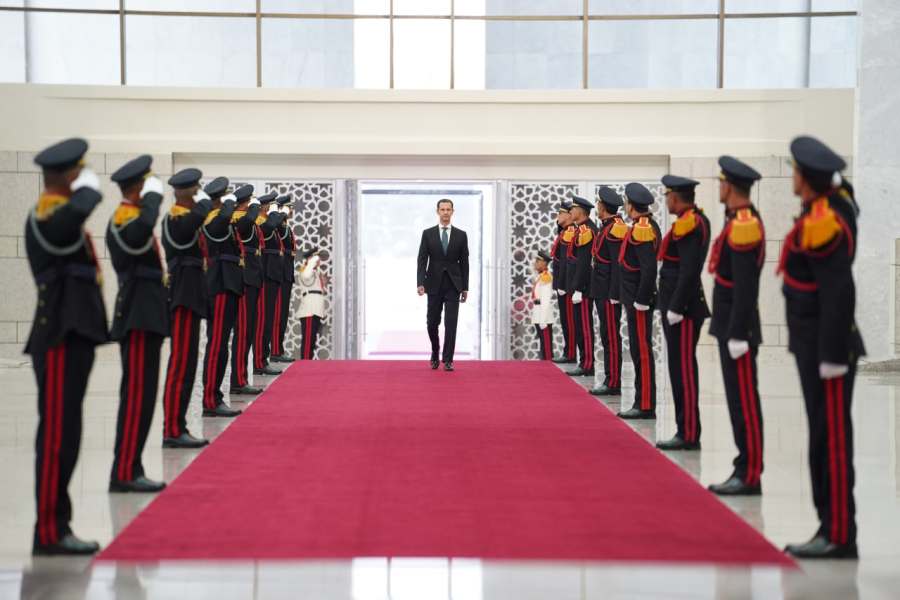 当地时间17日,叙利亚总统巴沙尔在叙首都大马士革宣誓就职。根据叙利亚宪法,总统任期7年,由选民直接选举产生,候选人需获得绝对多数选票才能当选。2000年以来,巴沙尔一直连任叙利亚总统。在今年五月举行的新一届叙总统选举中,巴沙尔以95.1%的得票率获胜,再次成功连任。