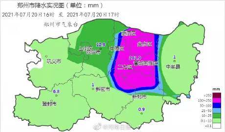 郑州气象局对这次特大暴雨做了一个数据的梳理和总结。郑州20日16时~17时,一个小时的降雨量达到了201.9mm。