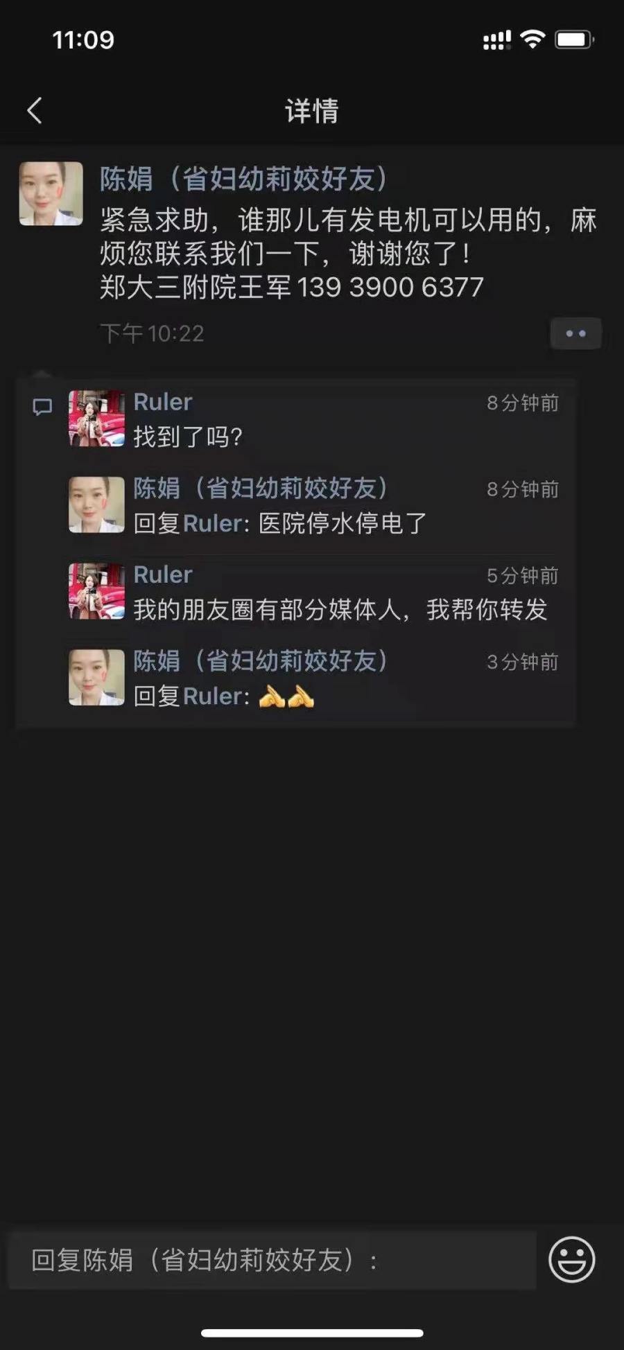 由于持续的降水导致积水已经进入到了我院老人的居住楼,最高水位约80厘米,我们所有老人及员工已经前转移到安全位置停电是从2021年7月20日17:00开始到在已经过去15个小时由于院内还有20位吸氧和排痰的老人急需用电,现在急需支援大功率发电机和电缆!