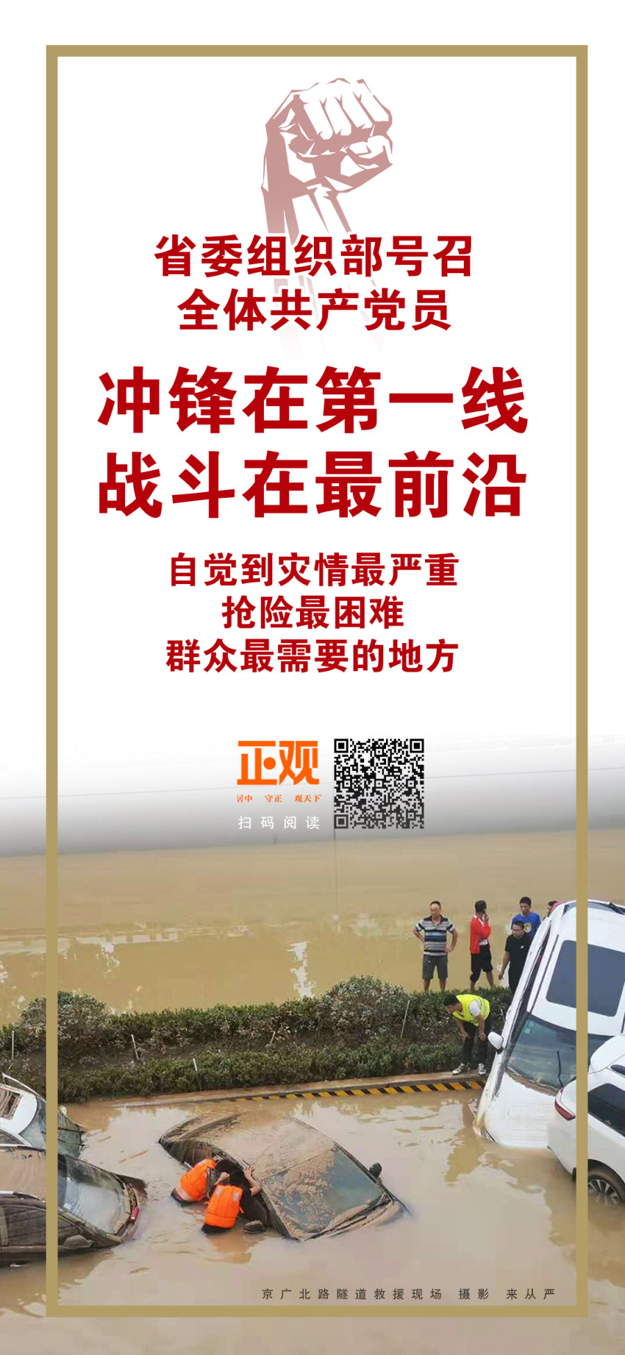 日前,省委组织部发出通知,针对我省进入防汛关键期、多地持续遭遇强降雨、发生严重内涝的严峻形势,要求全省基层党组织和广大党员深入学习贯彻习近平总书记关于防汛救灾工作的重要指示精神,认真落实省委部署和要求,充分发挥战斗堡垒和先锋模范作用,迎难而上、勇于担当,坚定必胜信念必胜信心,众志成城打赢防汛救灾保卫战。