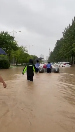 “我们20号下午出现洪水灾情后就一直在执行任务,晚上我和同事也都没有休息,21号早上本来在高铁站附近帮助滞留的旅客,但一接到电话就往这边赶了,拖了海事局的皮划艇赶到小区,那个水很深,大概有1米多深。”刘昊介绍当时的紧急情况。